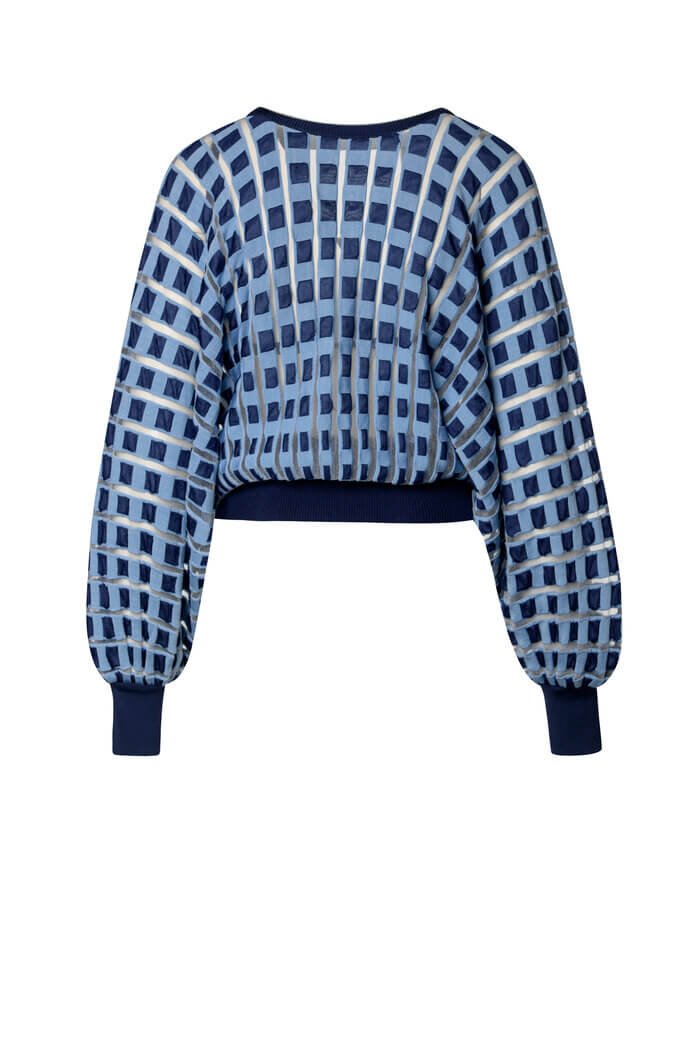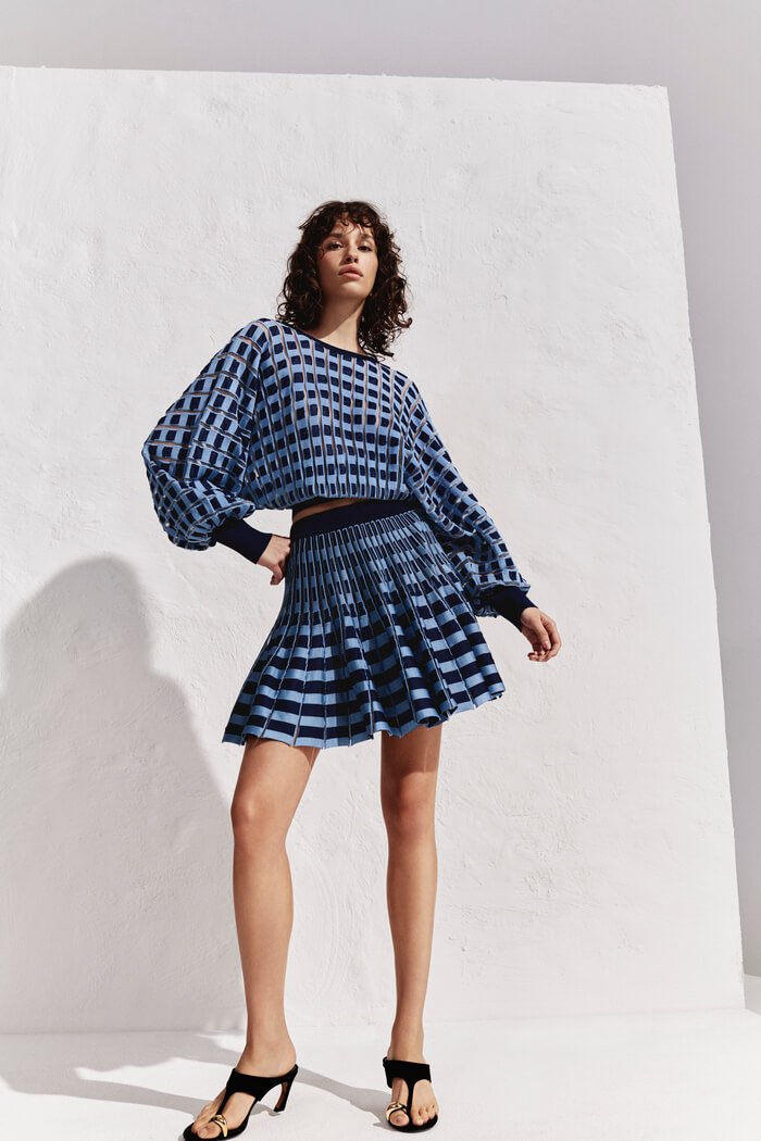 Combine com saia ou calça da mesma linha para um look completo, ou use com peças neutras para destacar o contraste gráfico do tricot.