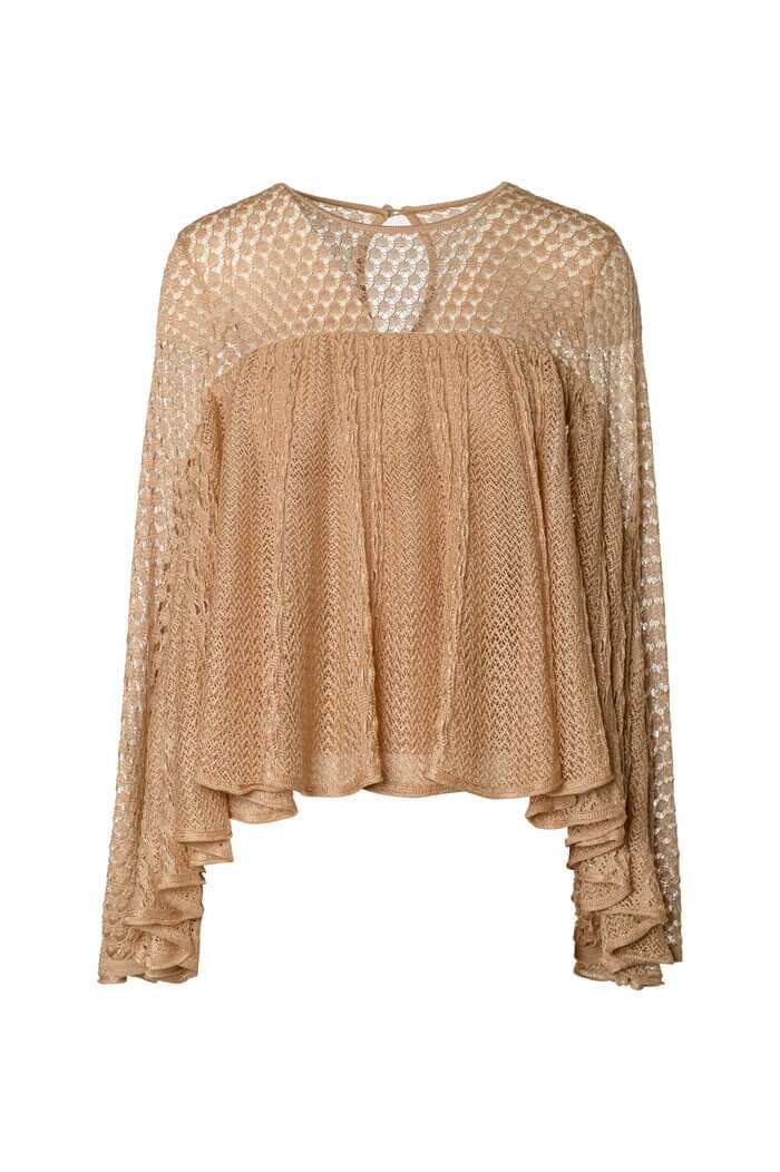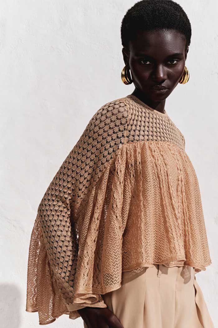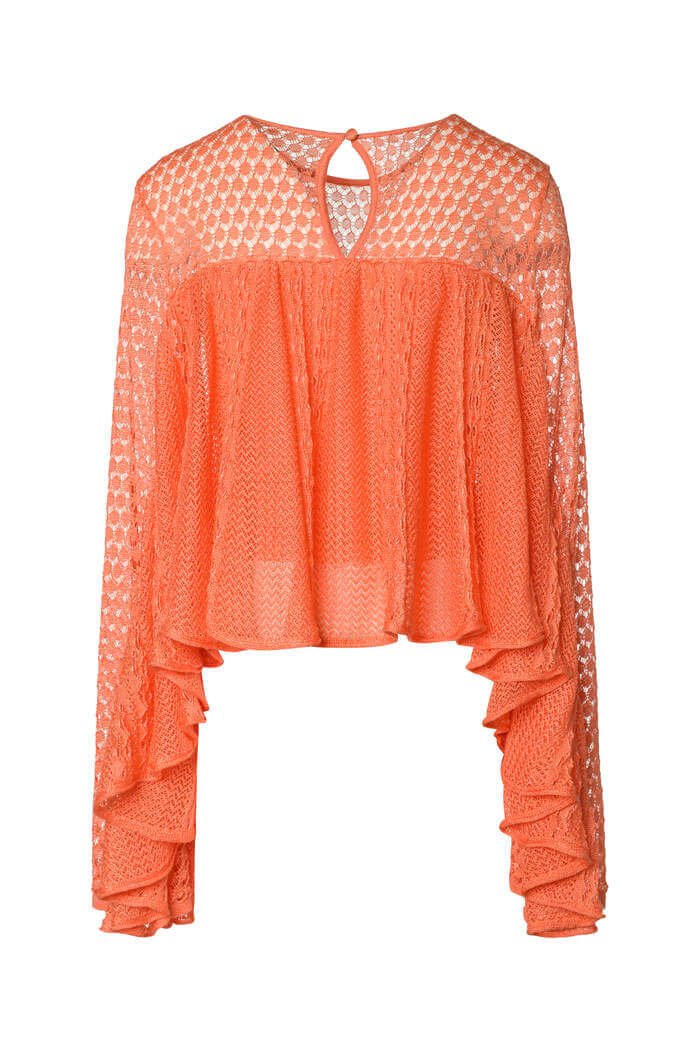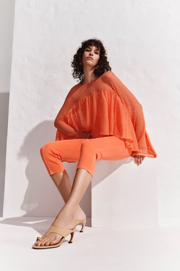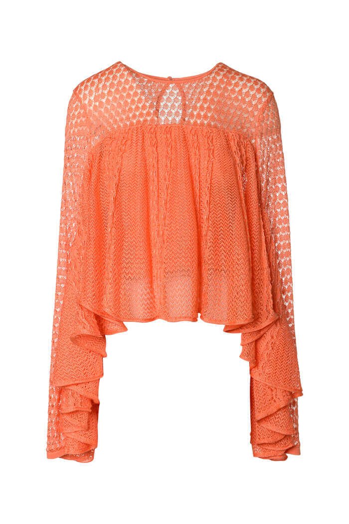 A Blusa Maxi Romance combina leveza e sofisticação. Com modelagem ampla e transparência sutil, revela o tricot rendado artesanal da coleção Paradiso em tons solares.
