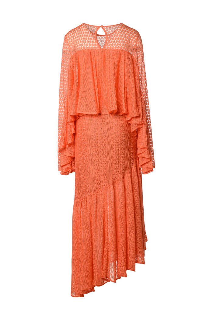 Modelagem moderna, renda tecida em galga fina, desenho autoral e exclusivo, com movimentos de babados parciais, fio rayon de viscose , toque leve , trazendo transparência sutil.