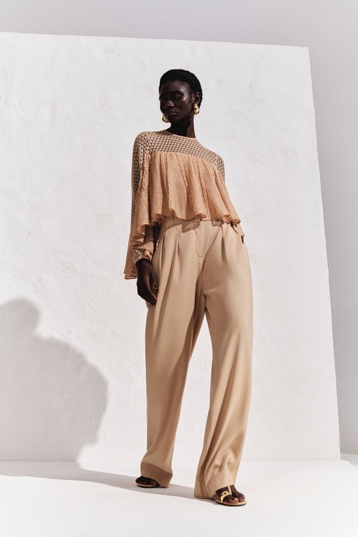 Por fim, sua paleta suave — com tons de coral e dourado — traduz a essência solar da coleção Paradiso, revelando um estilo que une naturalidade e requinte.