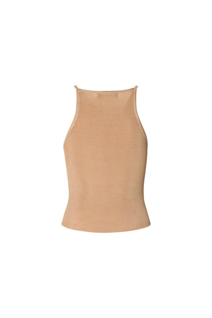 Detalhes: Alças finas, acabamento canelado, sem costuras aparentes