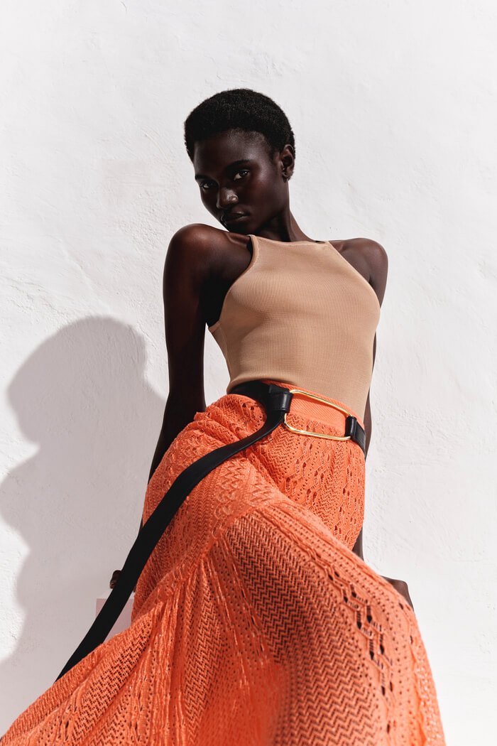 A Regata Basic Estella é uma peça essencial que transita com facilidade entre diferentes estilos. Para uma proposta mais sofisticada, experimente combiná-la com a Saia Lápis Jacquard Paradiso ou a Calça Jacquard Paradiso. Ambas as peças criam um contraste elegante com a modelagem justa e minimalista da regata, valorizando a silhueta e adicionando textura ao visual.