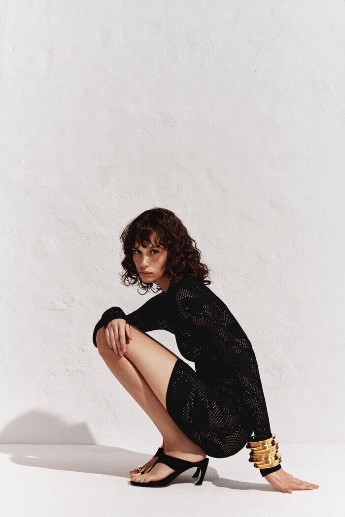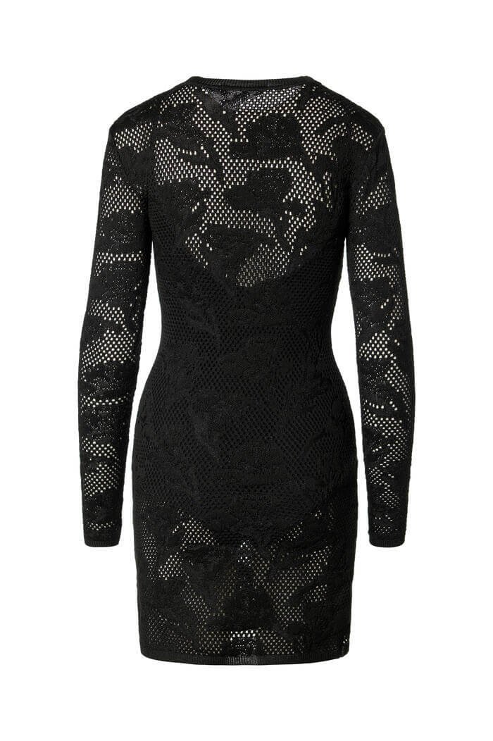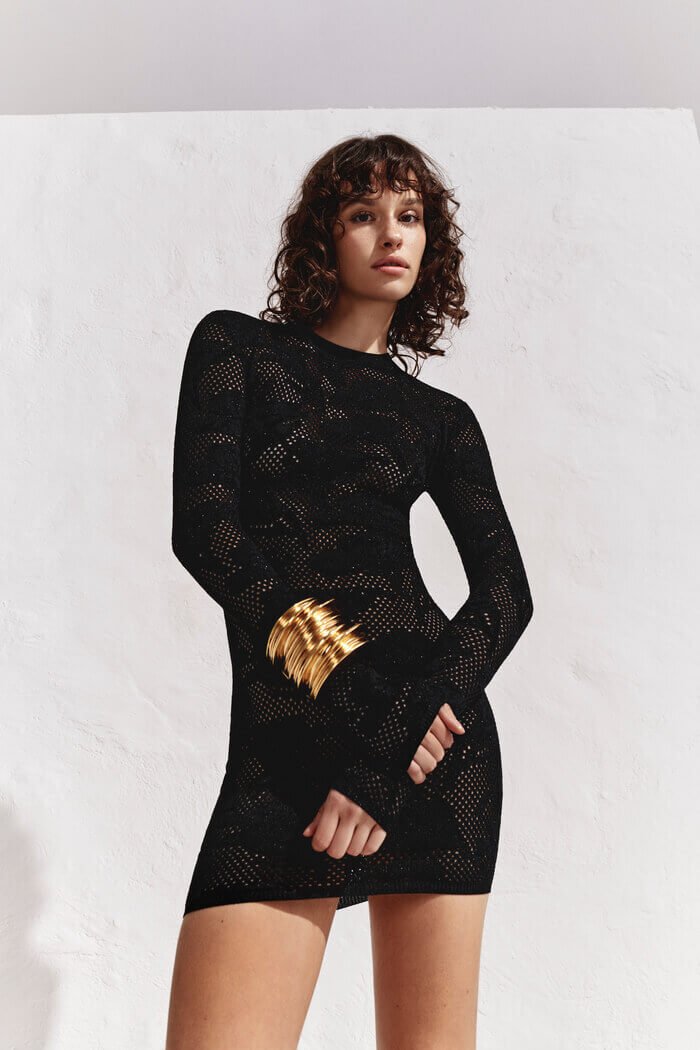 Como resultado, o visual ganha sofisticação com personalidade. Enquanto a gola redonda e as mangas longas trazem sobriedade ao look, o comprimento mini garante um toque moderno e ousado.